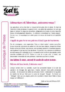Laboureurs et laborieux, unissons nous ! Communiqué de Presse du 03 février 2024 Christophe DENIZOT2026-01-30T23:39:08+01:00 Partager cet article avec les autres ! FacebookXLinkedInPinterestEmail Articles similaires Derrière les défaillances d’entreprise, ce sont les salarié(e)s et leurs familles qui trinquent ! Galerie Derrière les défaillances d’entreprise, ce sont les salarié(e)s et leurs familles qui trinquent ! 4 avril 2026 Guerre = DANGER sur l’emploi Galerie Guerre = DANGER sur l’emploi 14 mars 2026 Le 8 mars n’est pas une fête, c’est une journée de lutte ! Galerie Le 8 mars n’est pas une fête, c’est une journée de lutte ! 21 février 2026 « Néorégression » ou l’art d’humilier une profession ! Galerie « Néorégression » ou l’art d’humilier une profession ! 20 décembre 2025