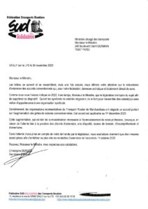 Lettre à Monsieur le ministre des transports (24 novembre 2023) Christophe DENIZOT2026-02-01T08:34:23+01:00 Partager cet article avec les autres ! FacebookXLinkedInPinterestEmail Articles similaires Derrière les défaillances d’entreprise, ce sont les salarié(e)s et leurs familles qui trinquent ! Galerie Derrière les défaillances d’entreprise, ce sont les salarié(e)s et leurs familles qui trinquent ! 4 avril 2026 Guerre = DANGER sur l’emploi Galerie Guerre = DANGER sur l’emploi 14 mars 2026 Le 8 mars n’est pas une fête, c’est une journée de lutte ! Galerie Le 8 mars n’est pas une fête, c’est une journée de lutte ! 21 février 2026 « Néorégression » ou l’art d’humilier une profession ! Galerie « Néorégression » ou l’art d’humilier une profession ! 20 décembre 2025