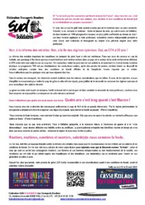 Routiers, routières, ouvrières, ouvriers, salarié(e)s, nous sommes la foule. Tract du 23 avril 2023 1er mai SOLIDAIRES Christophe DENIZOT2026-02-01T08:01:16+01:00 Partager cet article avec les autres ! FacebookXLinkedInPinterestEmail Articles similaires Derrière les défaillances d’entreprise, ce sont les salarié(e)s et leurs familles qui trinquent ! Galerie Derrière les défaillances d’entreprise, ce sont les salarié(e)s et leurs familles qui trinquent ! 4 avril 2026 Guerre = DANGER sur l’emploi Galerie Guerre = DANGER sur l’emploi 14 mars 2026 Le 8 mars n’est pas une fête, c’est une journée de lutte ! Galerie Le 8 mars n’est pas une fête, c’est une journée de lutte ! 21 février 2026 « Néorégression » ou l’art d’humilier une profession ! Galerie « Néorégression » ou l’art d’humilier une profession ! 20 décembre 2025